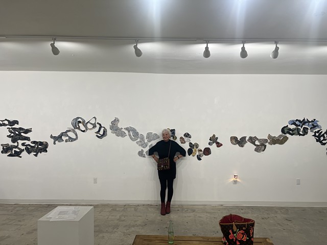Several of the works in this exhibit are made up of multiple independent parts. Therefore, many different configurations are possible, so sizes are approximate. A collector acquiring one of these works becomes a part of the creative process, as a new configuration can be chosen to please the person and to fit the space.